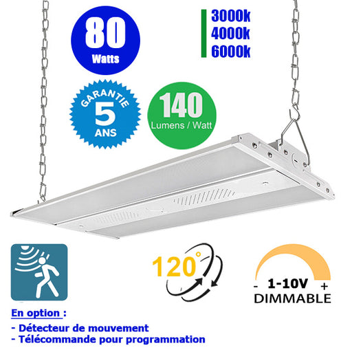 Pack de 5x Lampes LED LINÉAIRE - Série LINEAR V3 - 100 Watts - 10 000 Lumens - 100 Lumens/watt - IP65 - Angle 120x60° - Protection à l'impact IK08 - 60 x 12 x 9 cm - 4000k / 6000k au choix