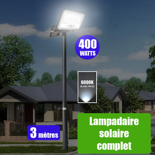 Livraison EXPRESS par Chronopost 24/48H ! Pack lampadaire solaire complet contenant : 1x Projecteur LED solaire Série SECURITY ULTRA - Avec détec...