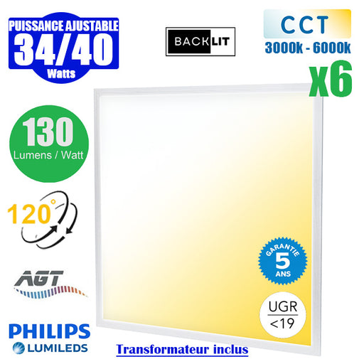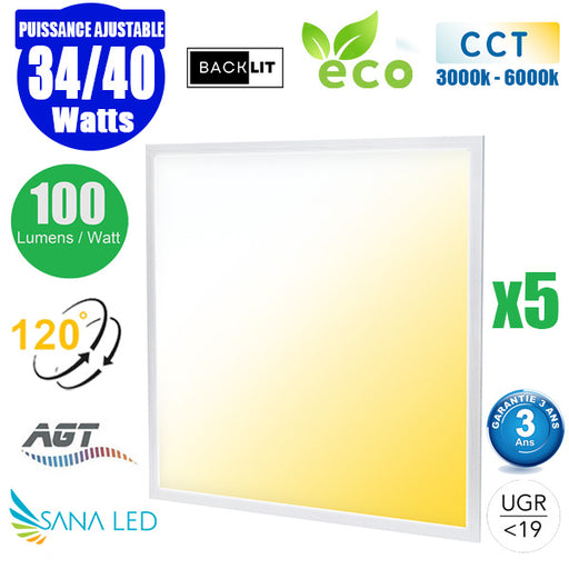Pack de 5x Dalles LED Dernière génération - BACKLIT - 30 x 120 cm - Série AMBITION ULTRA - 3000k / 4000k / 6000k au choix – Puissance 36 Watts - 5040 Lumens - 140 Lumens/Watt - Transformateur inclus - UGR <19 - Garantie 3 ans