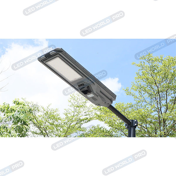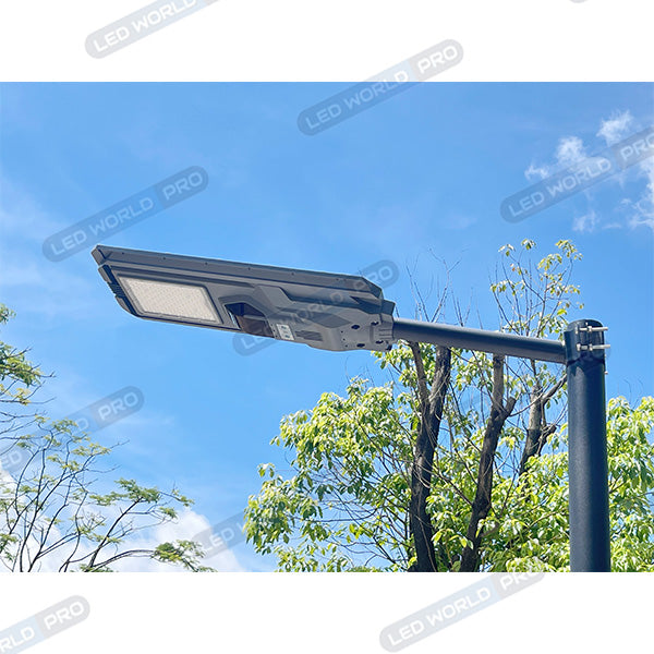 Lampe de rue solaire - Série STARSHIP - Rendu lumineux 1200 Watts - 3600 Lumens - Couleur 6000K - Angle 150x70° - IP65 - Dimensions 82 x 30 x 8 cm - Tube d'insertion 45mm - Avec détecteur de mouvement - Télécommande - 3 modes de fonctionnement
