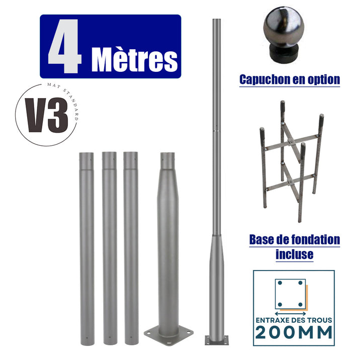 Mât pouvant s'adapter sur massif béton avec entraxe latéral 200 x 200mm ( massif non fourni)