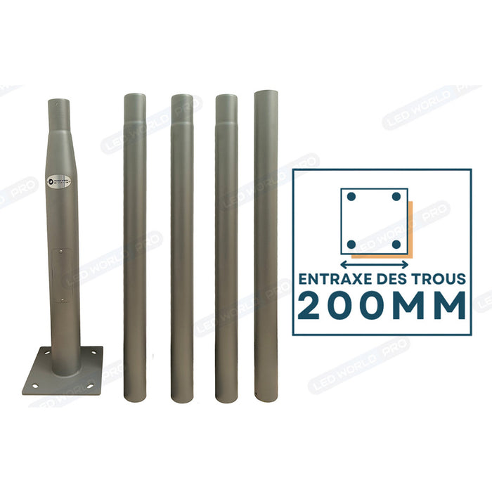 Mât pouvant s'adapter sur massif béton avec entraxe latéral 200 x 200mm ( massif non fourni)
