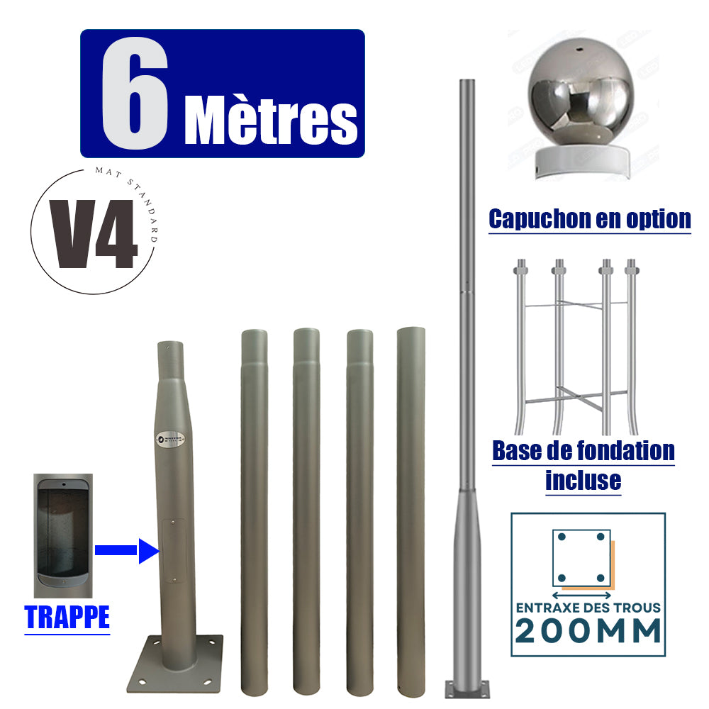 Mât pouvant s'adapter sur massif béton avec entraxe latéral 200 x 200mm ( massif non fourni)