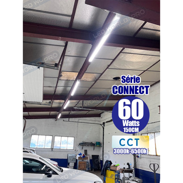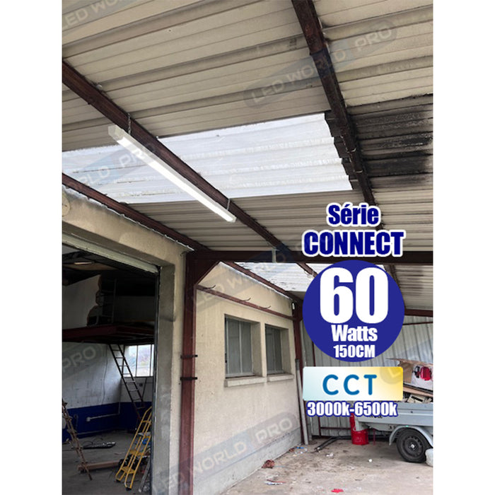 Pack de 20x Reglettes LED étanches 150cm - Série CONNECT - CCT (Couleur Changeante en Température) - 60 Watts - 8400 Lumens - 140 Lumens/watt - 120° - IP65 - 148 x 7 x 6 cm - Transformateur Flicker Free - Branchement en Série Possible - Garantie 3 ans