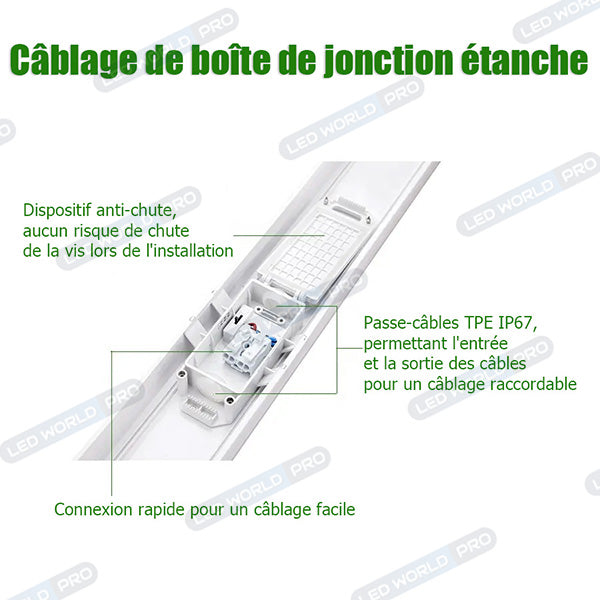 1 - Réglettes : Ce sont les unités d'éclairage que vous souhaitez connecter en série. Elles sont généralement dotées de connecteurs à chaque extrémité pour faciliter le branchement.