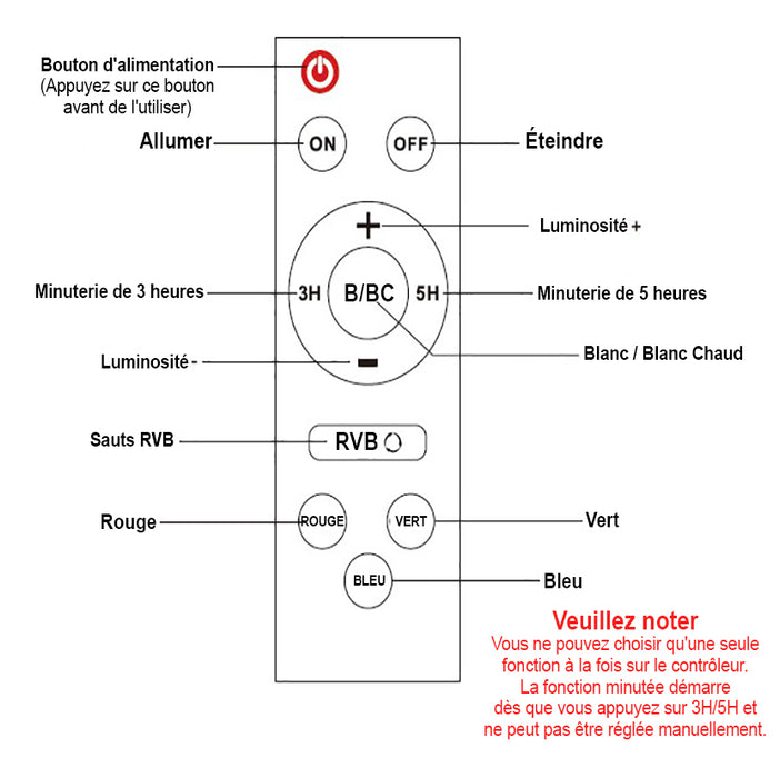 Contenu : Lampe + Télécommande + vis S.S304 + Tube d'encastrement + manuel d'utilisation
