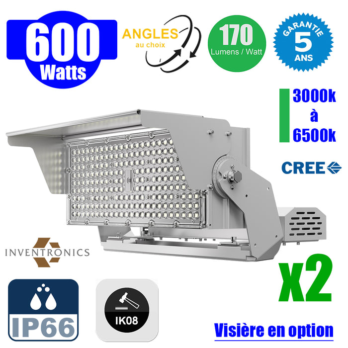 Pack de 2x Projecteurs hautes puissances LED de stade filaire - Série EVOLUTION V2 - 600 Watts - 102 000 Lumens - 170 Lumens/Watt - Angle 20° / 30° / 60° / 90° / MBP20 / MLP30 / MBP45 / MBP70 au choix - 3000K à 6500K - Visière en option - Garantie 5 ans