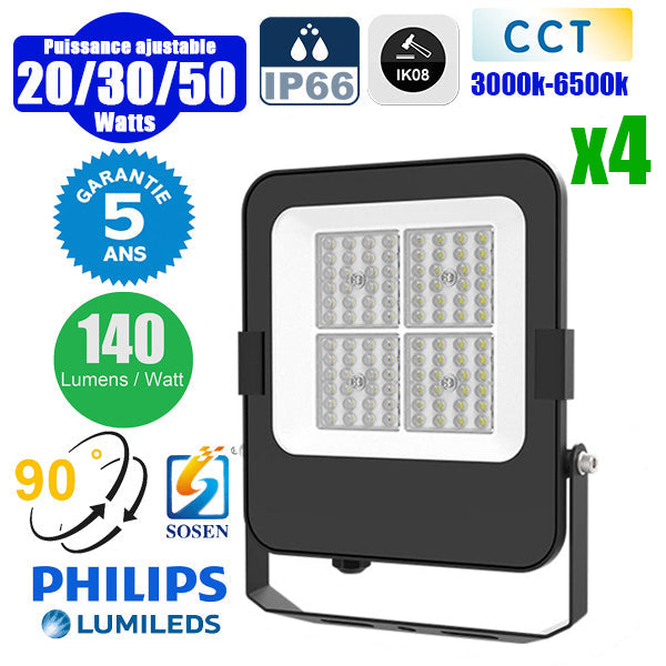 PACK DE 4 PROJECTEURS LED FILAIRES CCT 20W / 30W / 50W AJUSTABLE !