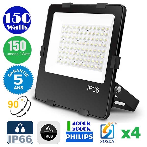 PACK DE 4 PROJECTEURS LED HAUTE PERFORMANCE 150 WATTS !