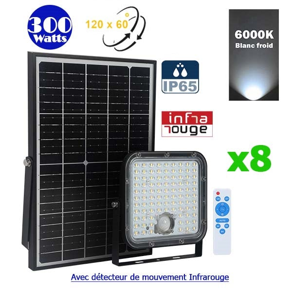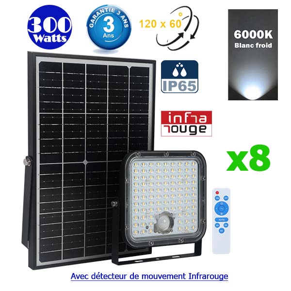 PACK DE 8 PROJECTEURS LED SOLAIRES 300 WATTS !