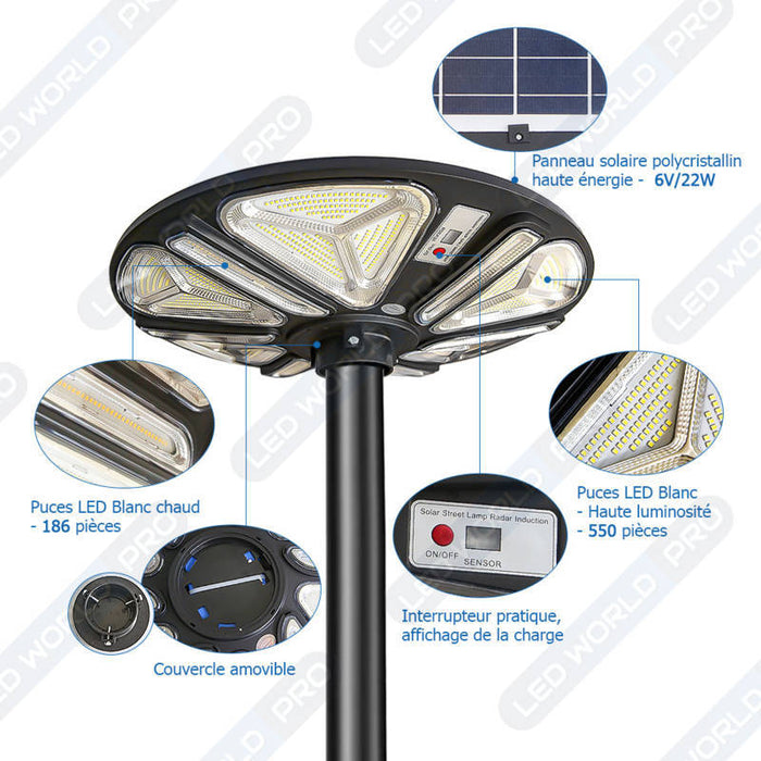 1x Lampe solaire pour extérieur Série OVNI TRICOLORE 300 Watts 3000k/4000k/6000k